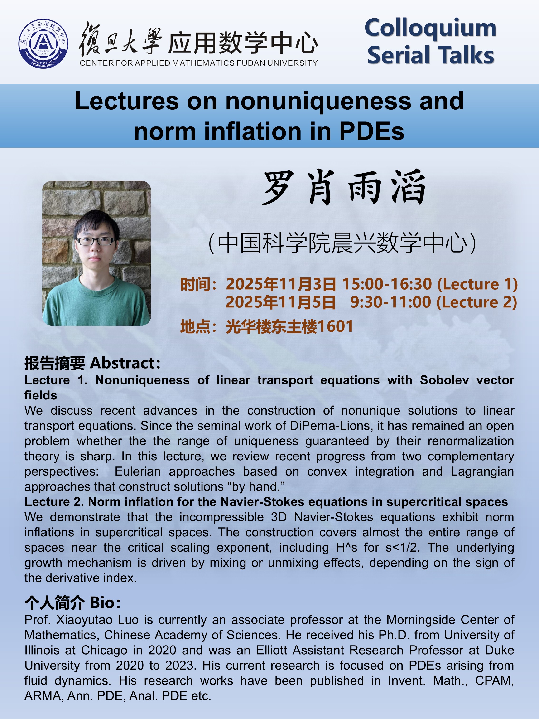 报告题目 Title:Lectures on nonuniqueness and norm inflation in PDEs
