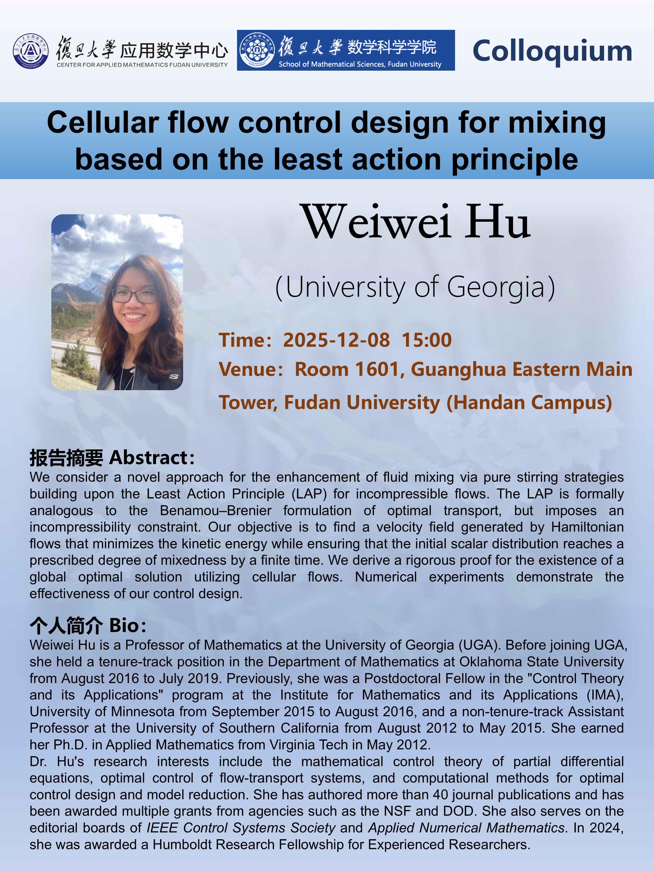 报告题目 Title:Cellular flow control design for mixing based on the least action principle